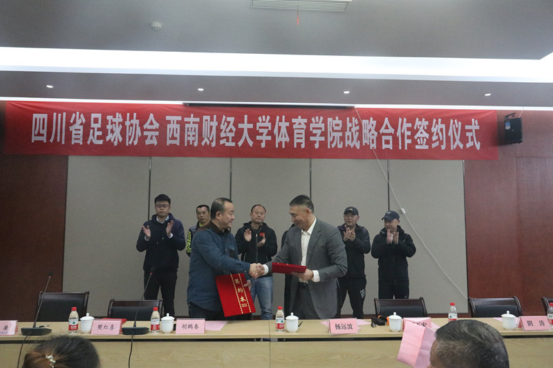 11月3日,四川省足球协会与西南财经大学必一手机客户端战略合作签约仪式在柳林校区光华体育馆举行。四川省足球协会常务副主席兼秘书长胡鹏春、学院院长兼直属党支部书记杨远波分别代表双方签约。参加签约仪式的还有省足管中心副主任樊红喜,四川省足球协会副秘书长吴廉,必一手机客户端副院长周正宏、阴涛,副书记李治,院长助理毛艳、陈丛刊及竞技体育系负责人,学校高水平运动队教练,男女足球队运动员等。