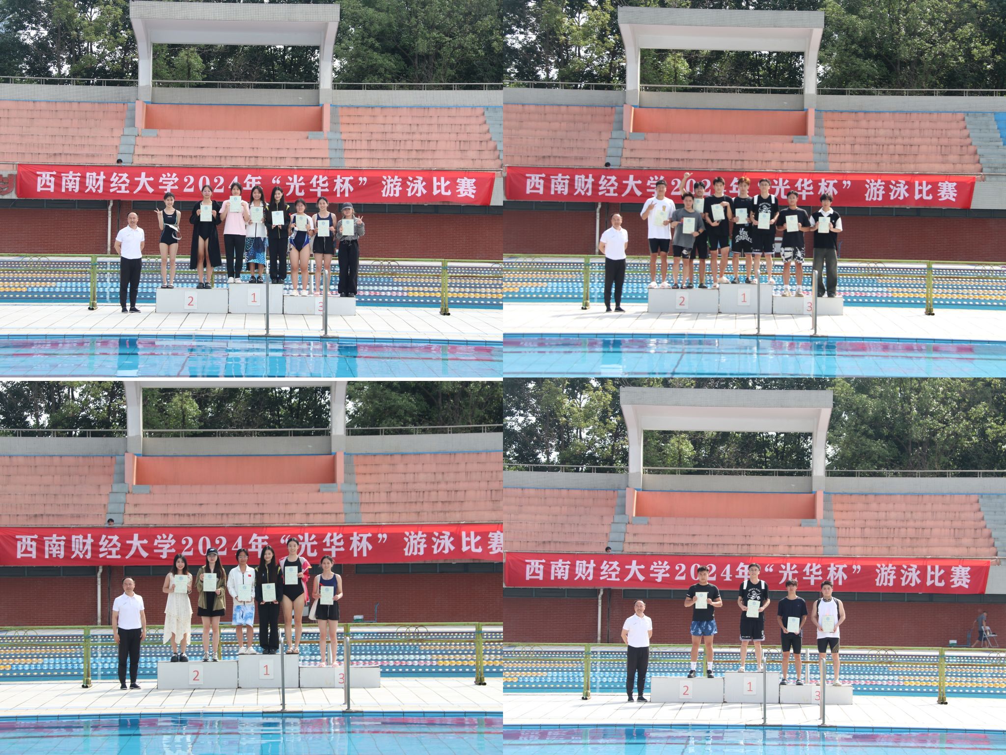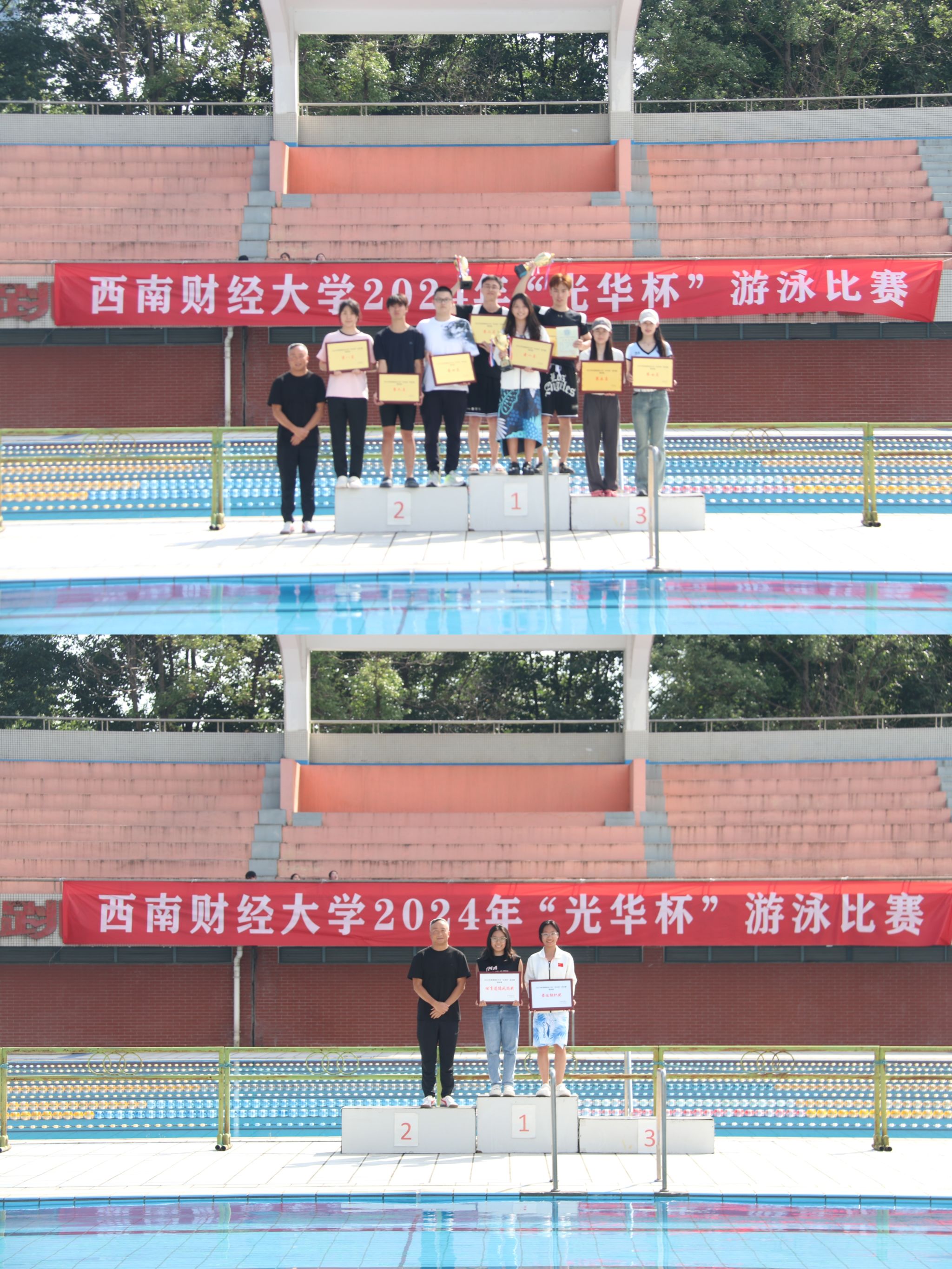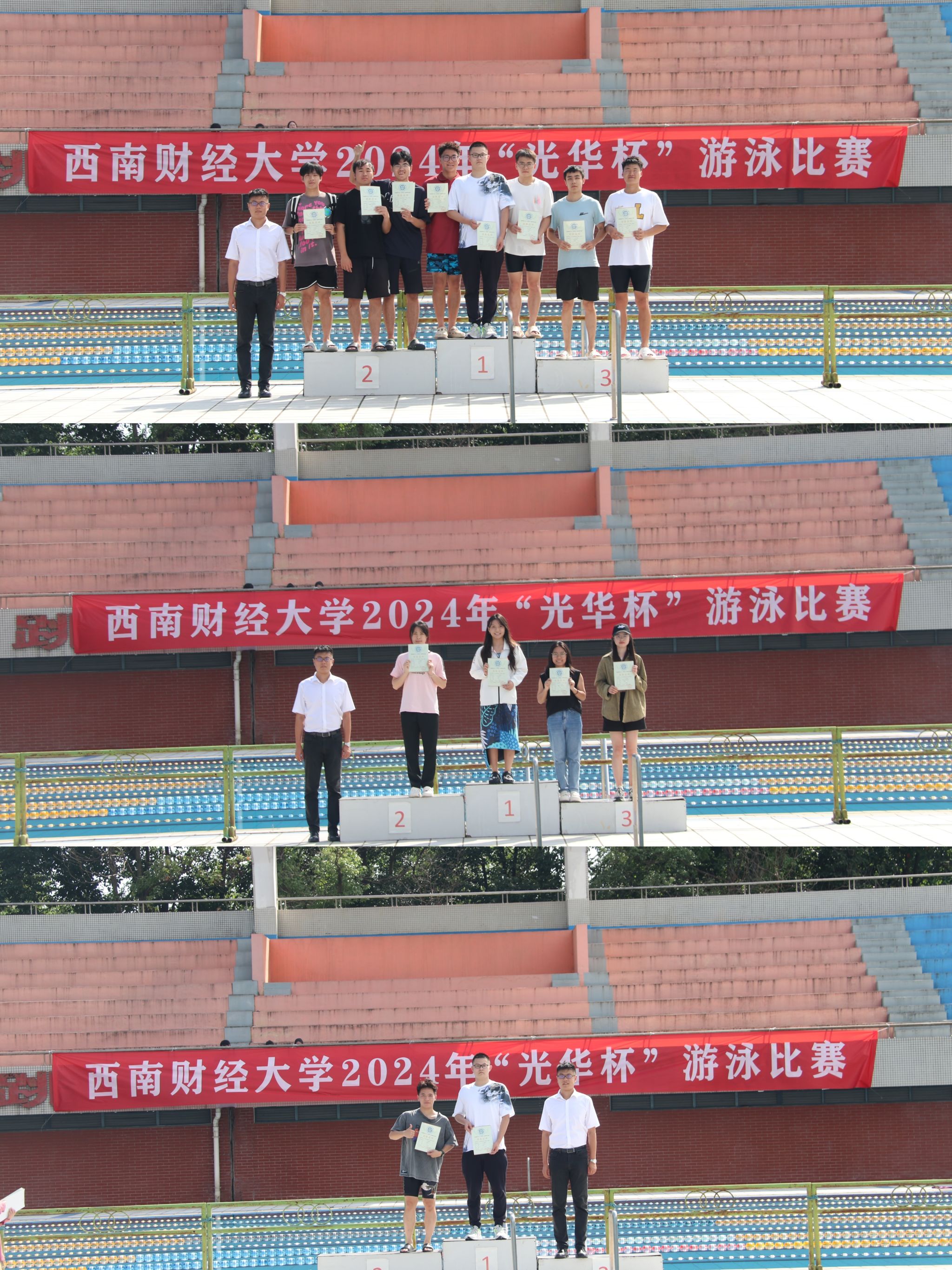6月11日下午,“礼赞新时代·奋进新征程,迎百年校庆·铸西财辉煌”2024年西南财经大学“光华杯”游泳比赛在柳林校区游泳池圆满举行。必一手机客户端党委书记周正宏,副院长陈丛刊,副书记李治为获奖学院以及个人颁发了荣誉证书及奖牌。