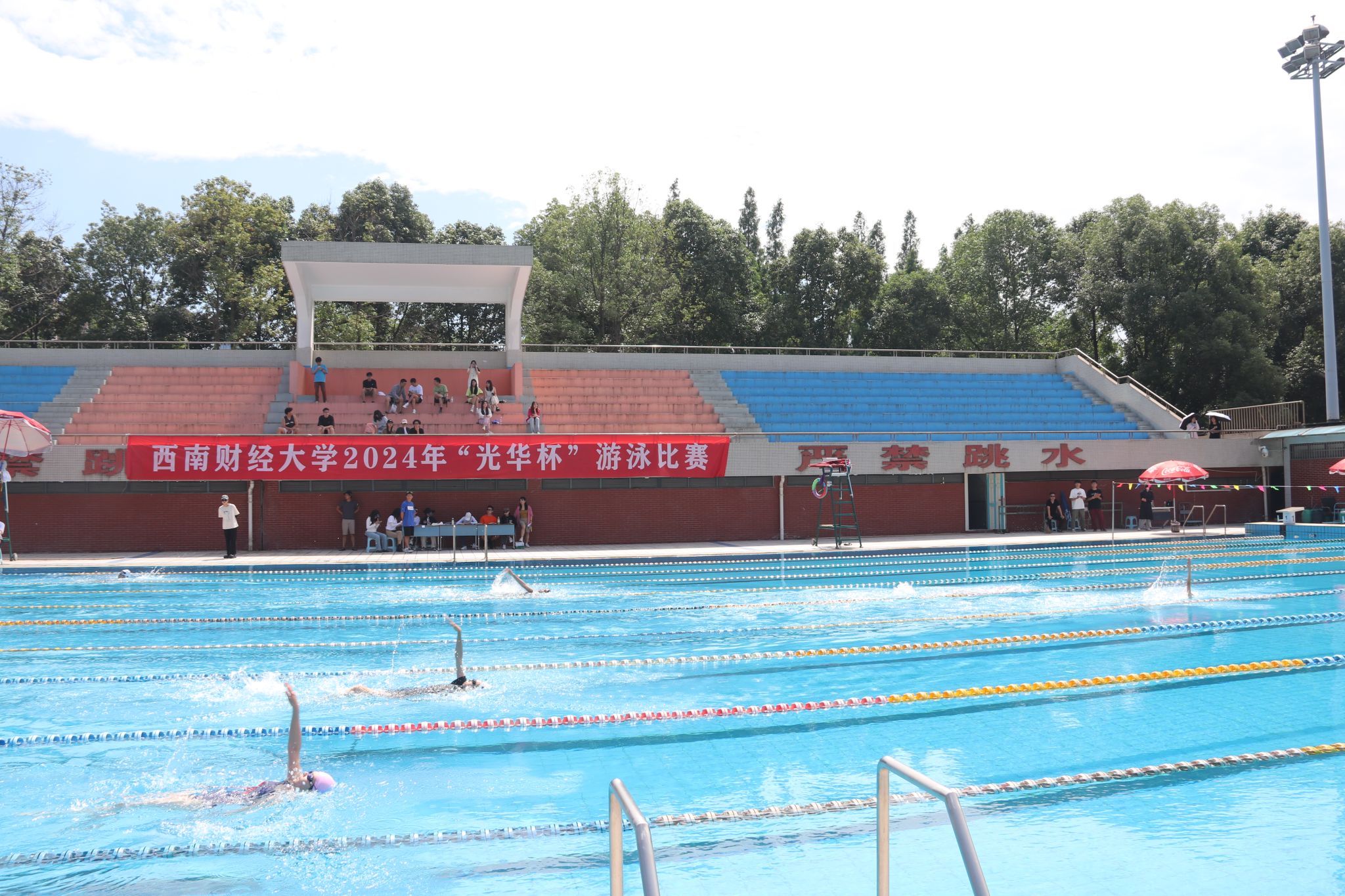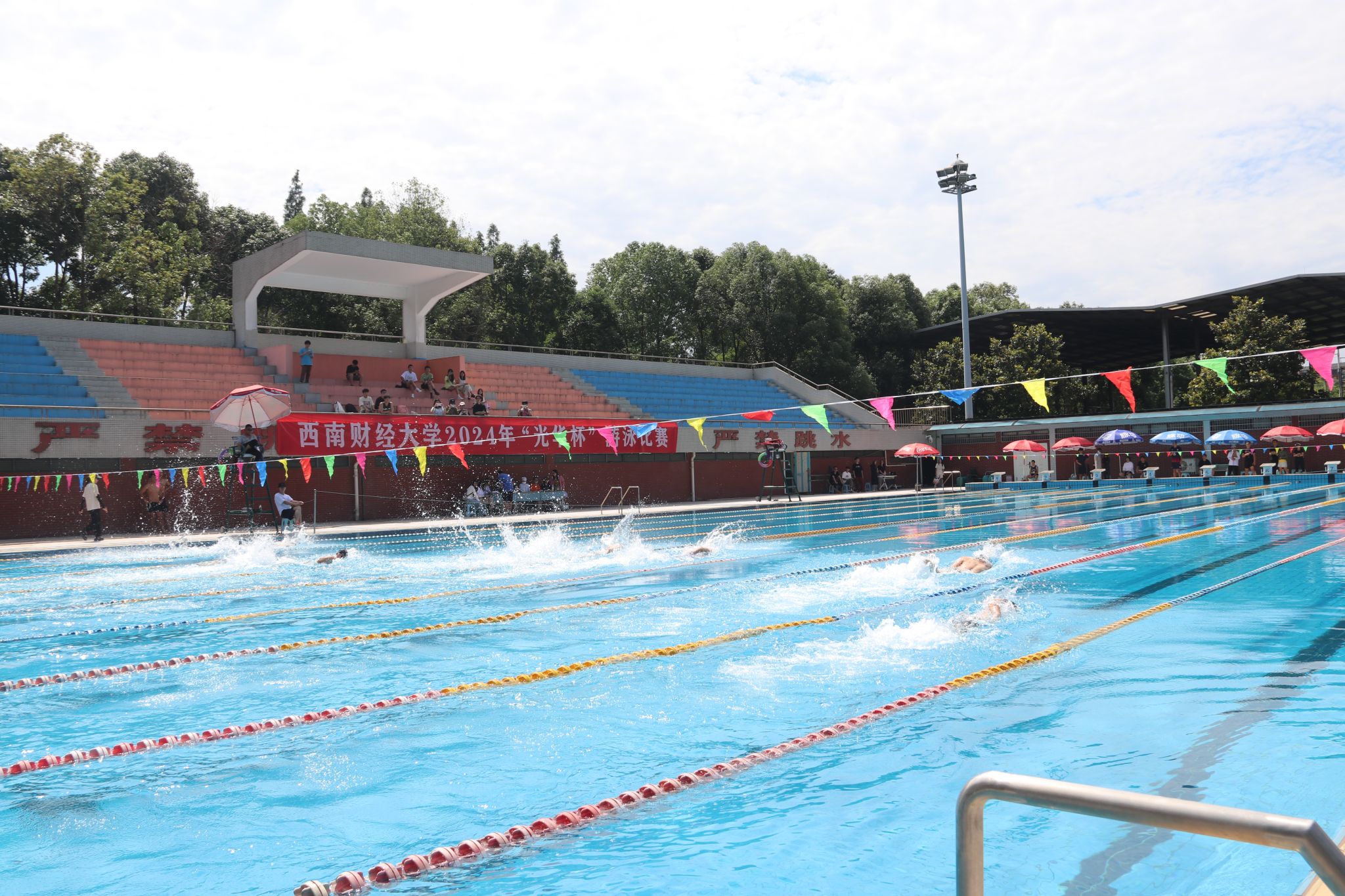 本次比赛设有男子、女子50米蛙泳、50米自由泳、50米蝶泳、50米仰泳等9个项目,共有14个学院,约90余人参赛。经过激烈角逐,共决出8个单项冠军,经济学院、金融学院 中国金融研究院、工商管理学院获得团体总分前三名。各学院代表队积极备战,奋力拼搏,在比赛中赛出风格、赛出水平、增进友谊,展现了新时代大学生蓬勃朝气和勇于拼搏的优良品质,他们以强健的体魄和健全的人格共同描绘强国建设、民族复兴的宏伟画卷,在新时代奋进新征程中,砥砺前行,用不懈努力唱响西财百年华诞的乐章!同庆百年,共襄盛典!