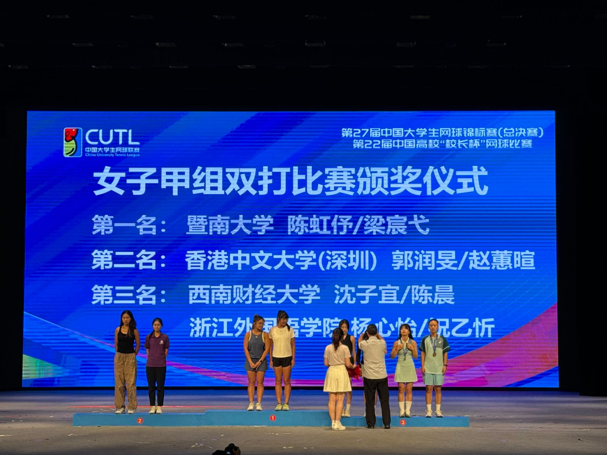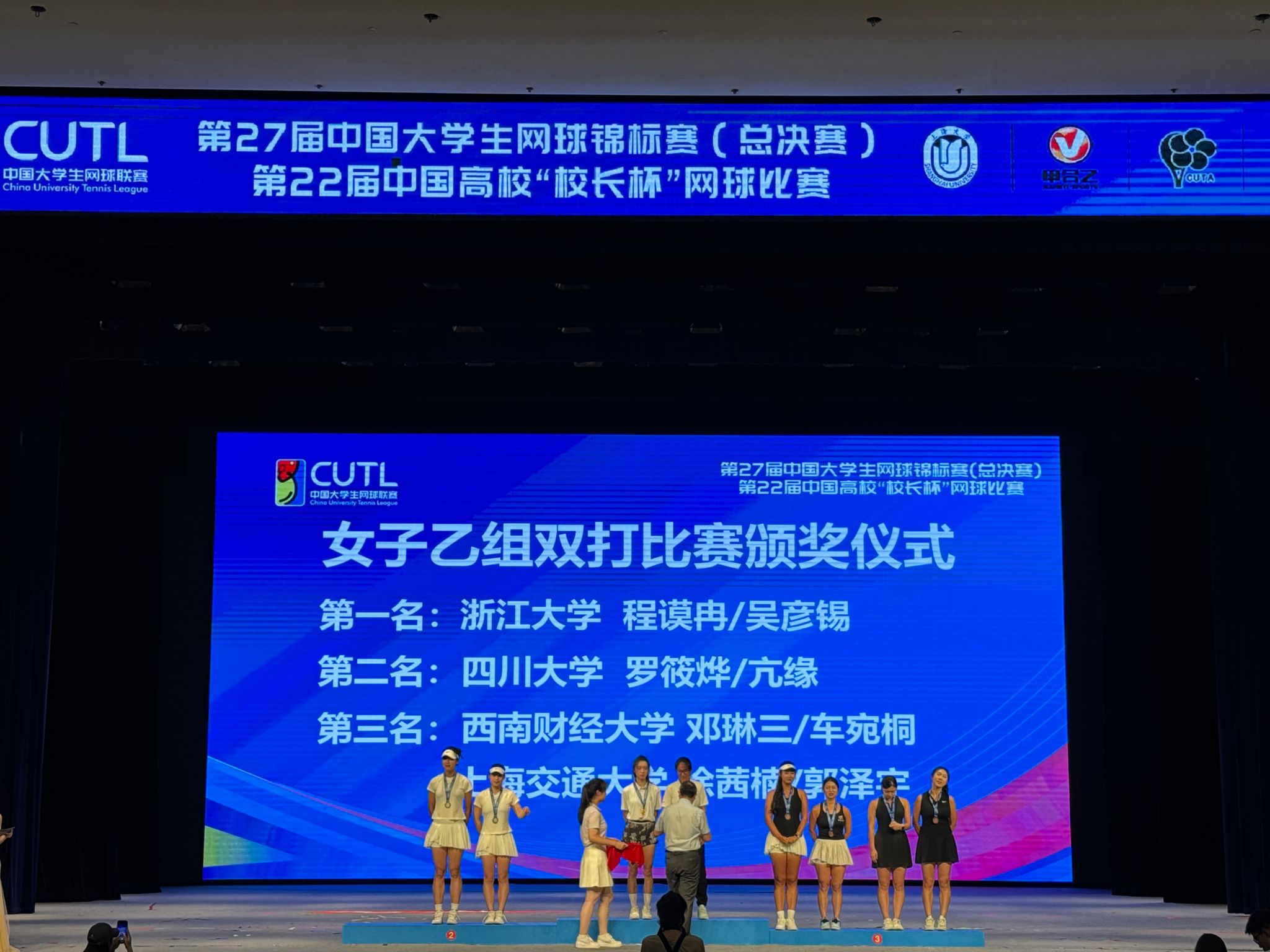 7月22日-8月1日,第27届中国大学生网球锦标赛(总决赛)在上海大学(宝山校区)举行。中国大学生网球锦标赛是我国大学生层面最顶级的网球赛事,经过八大分区赛的激烈角逐,在本届中国大学生网球锦标赛(总决赛)中,共有来自全国132所高校的915名同学成功晋级总决赛。参赛规模创历史新高!必一(中国)官方网球队在前期分区赛上表现突出,成功晋级总决赛,11名运动员代表学校参赛,孙巨杉、施泓宇、孔星宇担任教练。经过八天的激烈角逐,西财健儿们在强手如林的赛场上顽强拼搏,团结奋进,获得女子普通高校甲组双打季军和女子高水平乙组双打季军的好成绩,充分展现了西财学子的精神风貌和青春风采,为即将到来的西财百年华诞献礼!