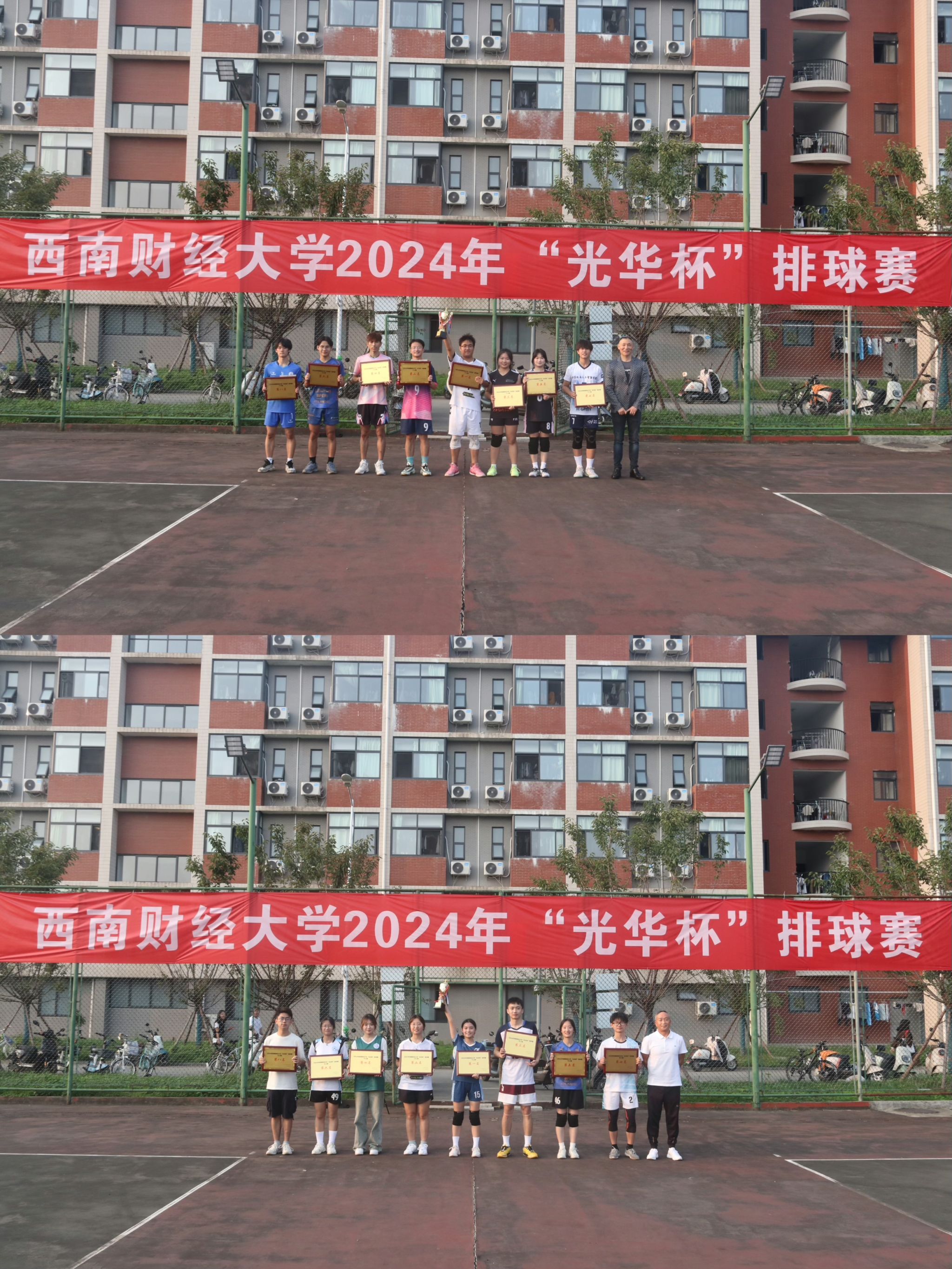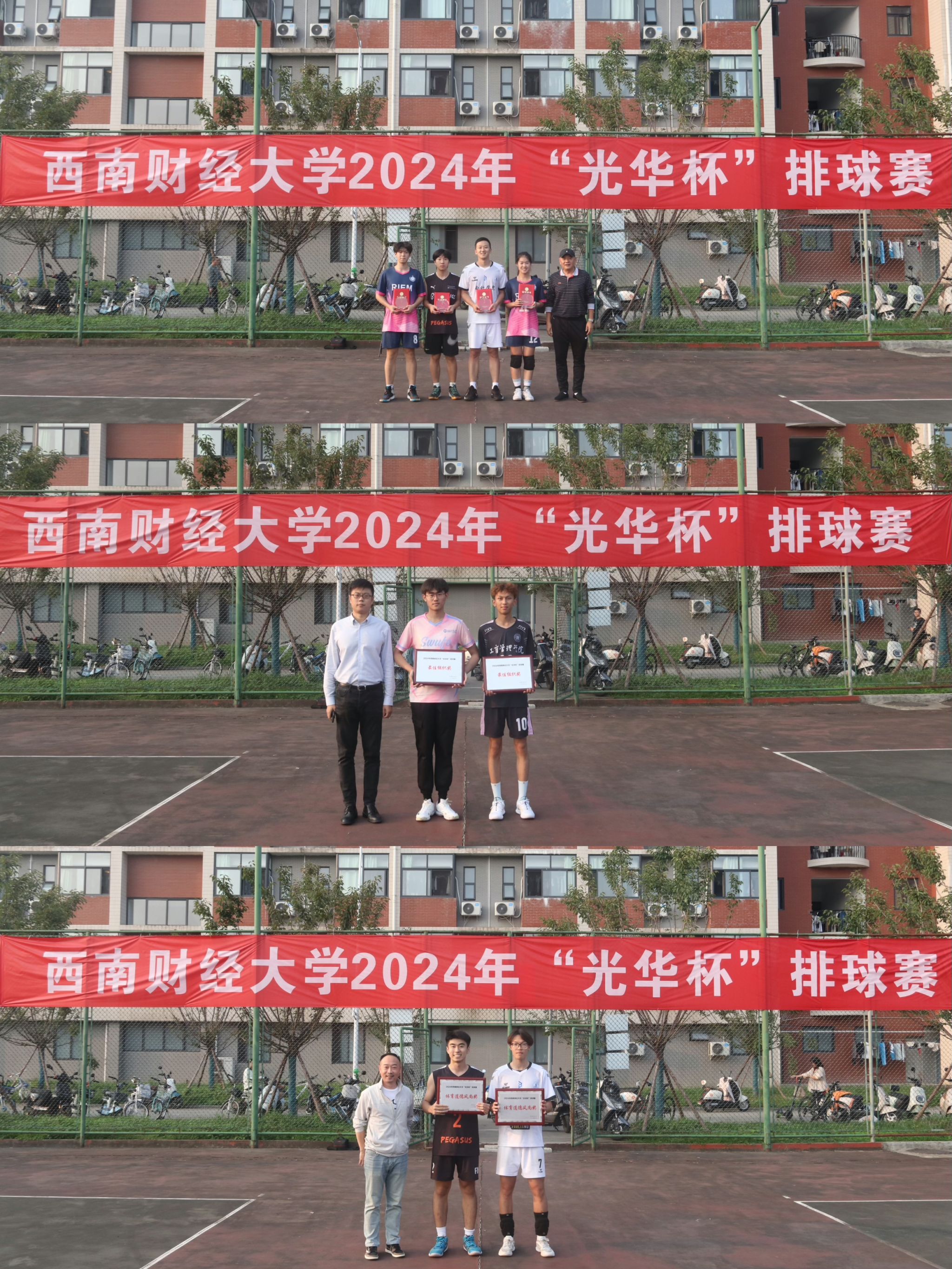 10月15日下午,“礼赞新时代·奋进新征程,迎百年校庆·铸西财辉煌”2024年西南财经大学 “光华杯”排球赛颁奖仪式在晨曦排球场举行。必一手机客户端院长杨远波,党委书记周正宏,副院长阴涛、陈丛刊,副书记李治为获奖学院以及个人颁发了荣誉证书及奖牌。