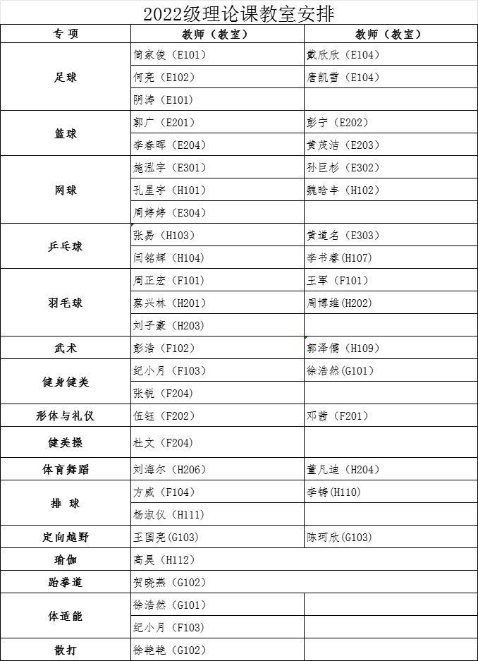 经教务处同意,本学期2022级、2023级本科生第1周体育课为必一(中国)官方理论课,3月4日起恢复户外教学。根据教室资源状况,现将理论课具体安排通知如下: