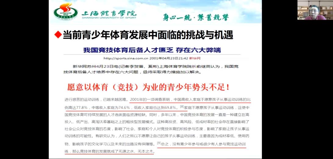 2021年5月12日下午15:30,上海必一手机客户端副校长、博士生导师唐炎教授通过线上方式,举办了题为《体教融合背景下我国青少年体育发展的思考》的光华讲坛。在外地出差培训学习的必一手机客户端院长杨远波教授在线主持了讲座,必一手机客户端研究生及部分教师参加了此次讲座。