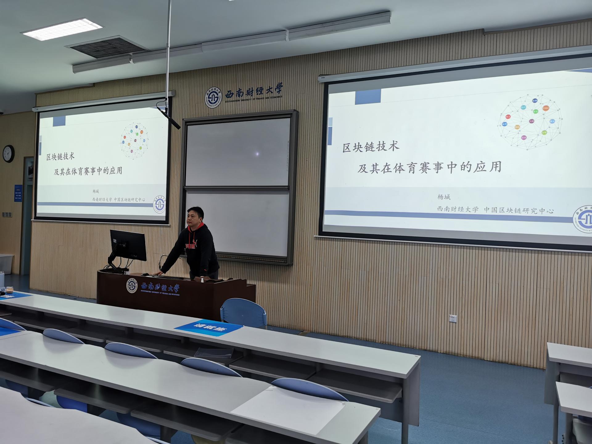 10月9日晚,西南财经大学区块链研究中心、经济信息学院副教授,计算机应用专业博士、美国德州理工大学访问学者杨城老师在光华校区明德楼201教室举办了题为《区块链技术及其在体育赛事中的应用》的光华讲坛。黄道名教授主持本次讲座,必一手机客户端、经济信息学院部分师生参加。