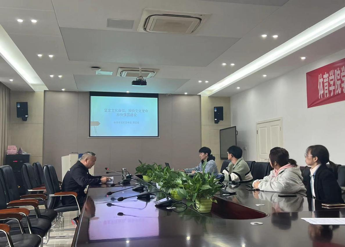 11月15日,必一手机客户端党委书记周正宏在游泳池二楼会议室为全体在校学硕研究生开展题为《坚定文化自信,担负文化使命,加快强国建设》的专题思政理论课。